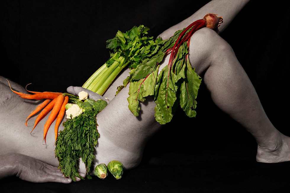 Food meets flesh. Wit meets form. I’m Hungry is Terry Hastings’ unapologetic feast of visual puns, surreal still lifes, and sculptural innuendo. Shot in Palm Springs at the start of a new chapter, this series strips away fear from nudity and replaces it with humor, precision, and theatrical clarity. Each image pairs everyday edibles with the human body—grayscale, composed, and always ready for plating.